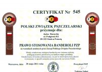 Posiadam certyfikat Polskiego Związku Pszczelarskiego na stosowanie banderoli na swoim miodzie.